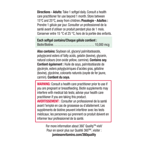 Jamieson Biotin 10,000 mcg | 45 Softgels