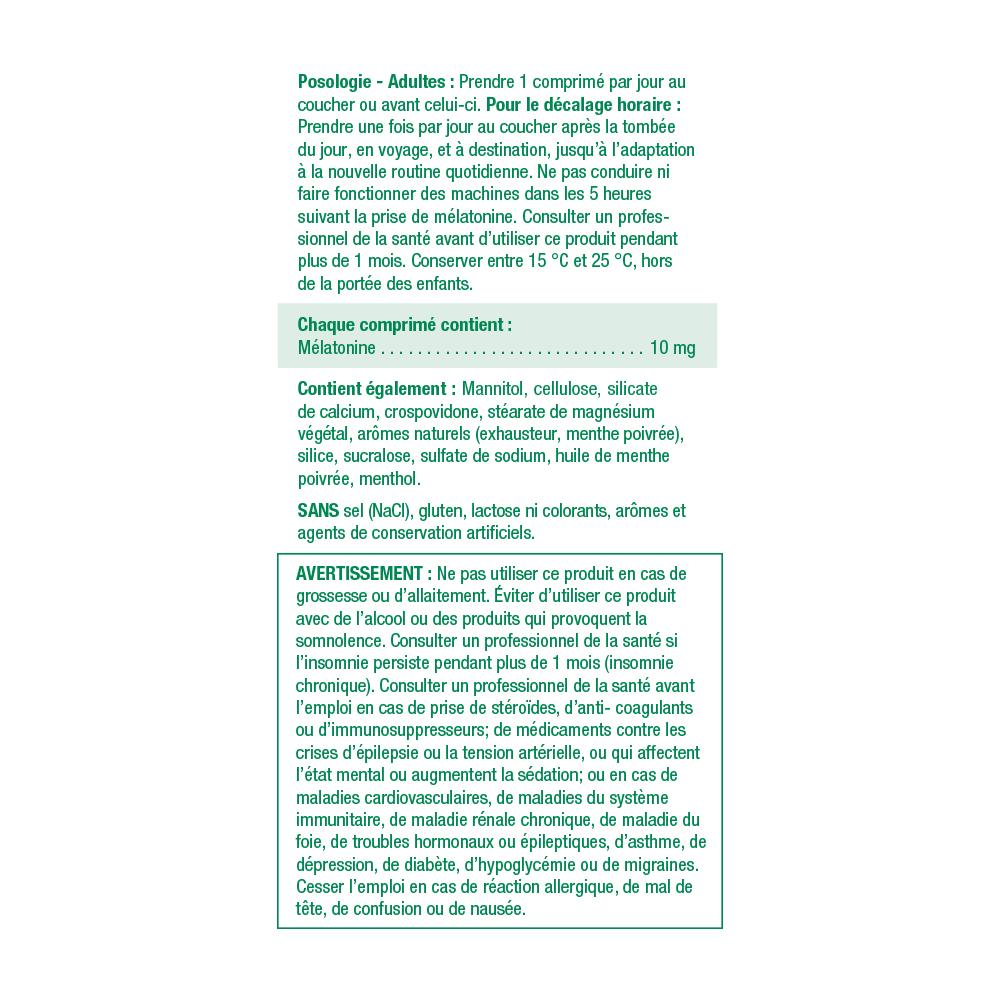 Take 1 tablet at or before bedtime. Do not drive or use machinery for 5 hours after taking melatonin. Consult a healthcare practitioner for use beyond 1 month. For jet lag: For occasional short-term use, take once a day at bedtime after darkness has fallen while travelling, and at destination, until adapted to the new daily pattern. Store between 15°C and 25°C, away from children.