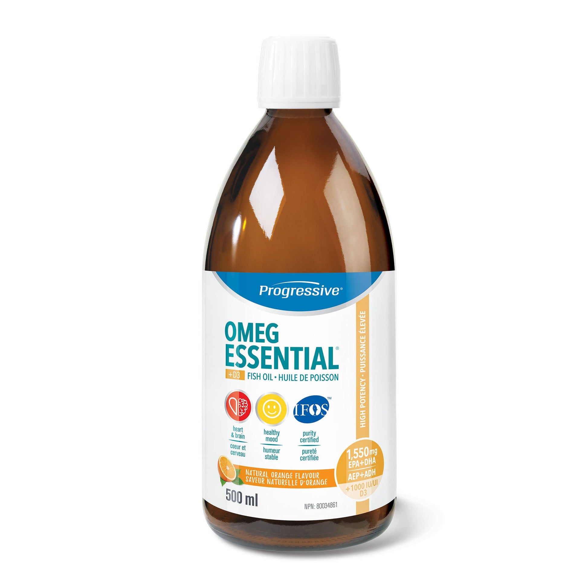 Progressive OmegEssential® High Potency Fish Oil is a foundational supplement designed to be taken on a daily basis. It has a long list of benefits including enhancing mental acuity and brain function and is ideal for the maintenance of good health. Each serving provides 1,000 mg of EPA and 550 mg of DHA in a balanced 2:1 ratio, along with 1,000 IU of vitamin D.