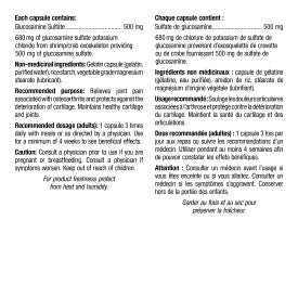 667 mg of glucosamine sulfate potassium chloride from shrimp / crab exoskeleton providing 500mg of glucosamine sulfate