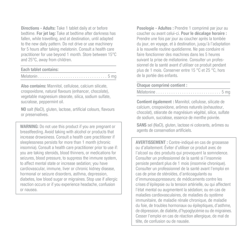 Jamieson 褪黑素快速溶解片经配制可帮助您恢复最佳睡眠模式,并纠正与航空旅行有关的干扰(“时差”)。配方的快速溶解技术可让您的身体迅速吸收有效成分,从而迅速起作用并发挥最大功效。