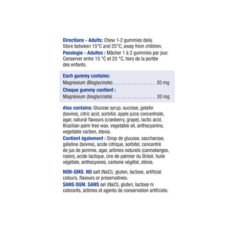 Jamieson鎂軟糖具有有趣和美味的蔓越莓葡萄風味,有助于骨骼和牙齒的發育,並支持適當的肌肉功能。