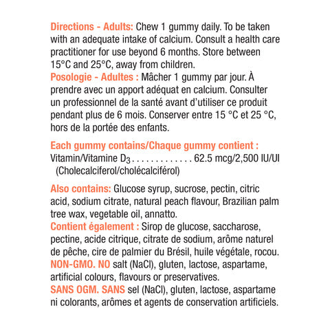 如果您患有高鈣血症和/或高鈣尿症,請勿使用本産品。如果您有以下情況,請在使用前咨詢保健醫生: 懷孕或哺乳;患有腎髒疾病;服用其他維生素 D 補充劑、含有維生素 D 的複合維生素補充劑或含有維生素 D 類似物的産品;服用任何處方藥,包括抗酸劑、抗驚厥藥、地高辛、消膽胺、考來替泊、礦物油、類固醇、他汀類藥物或噻嗪類利尿劑。如果出現虛弱、疲勞、嗜睡、頭痛、食欲不振、口幹、金屬味、惡心、嘔吐、眩暈、耳鳴、缺乏協調性和肌肉無力等早期症狀,請停止使用並咨詢保健醫生高鈣血症,或者如果您有任何其他副作用。