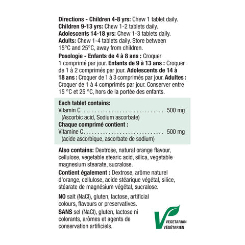 - 加拿大健美生維生素C咀嚼片,不含人工防腐劑,糖,鹽,澱粉,乳糖,谷蛋白。